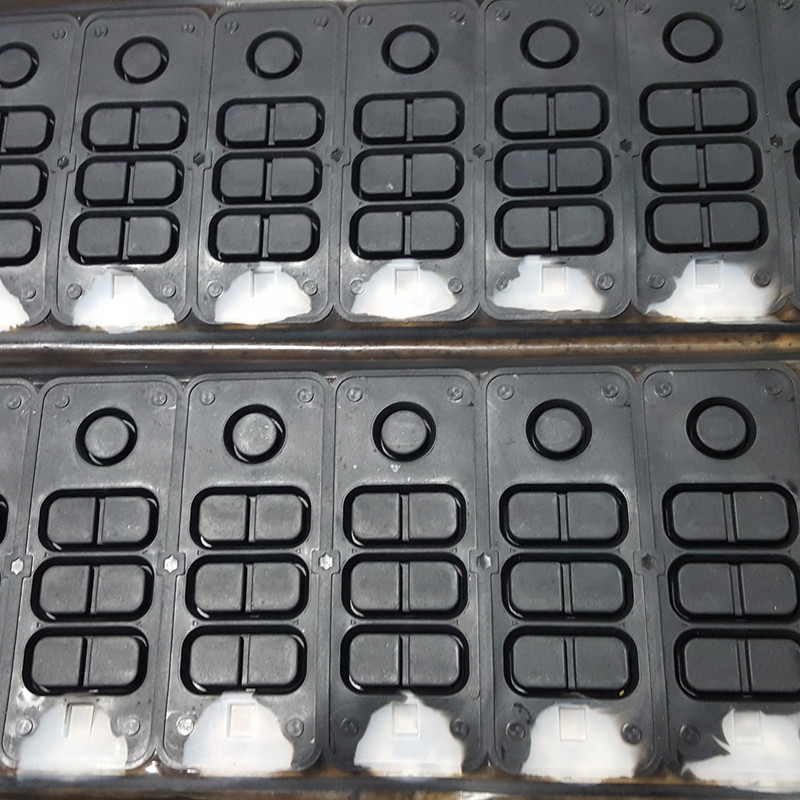 矽膠按鍵成型流(liú)程 矽膠按鍵成型流程是將添加(jiā)好硫化劑及調配好顏色的矽膠按鍵(jiàn)原料(liào),按產品的生產工藝要求,把(bǎ)裁切好的原料排放在(zài)成型模具當中進行加...